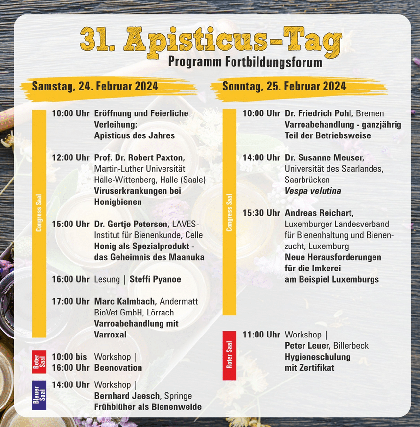Le Buone Pratiche Apistiche e le Misure di Biosicurezza in Apicoltura: Definiamole insieme! 14-15-20-21 Novembre 2023 Ore 15.30 – 19.00 IN PRESENZA: IZSLT Roma, Sala Zavagli, Via Appia Nuova 1411, 00178 Roma WEBINAR: https://izslt.webex.com/meet/beemeetings Scarica la locandina